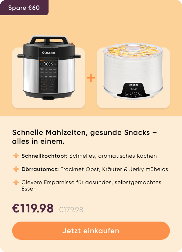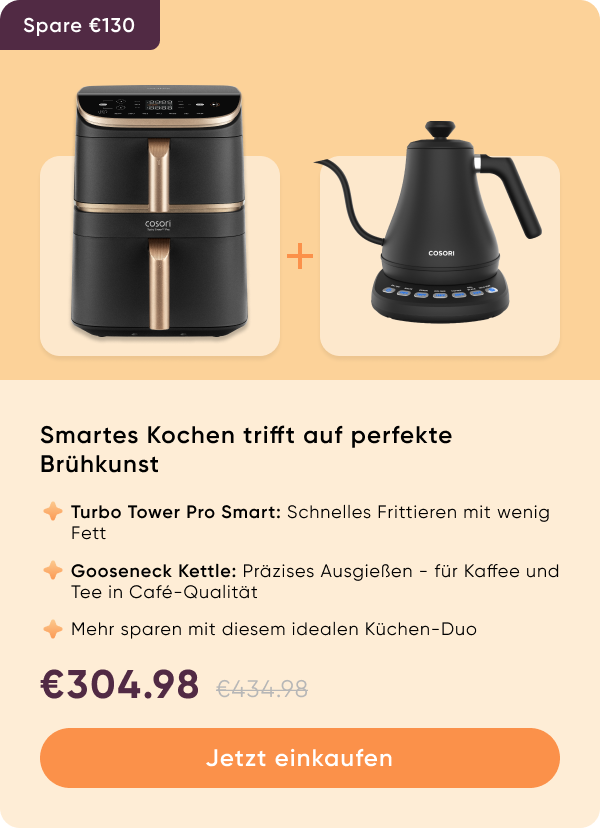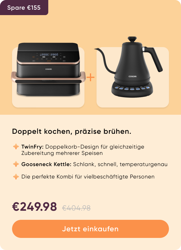 Kombiniere deine Lieblingsgeräte von Cosori und spare bis zu 62€ mit unseren Bundles. Mehr Funktionalität, mehr Spaß in deiner Küche.