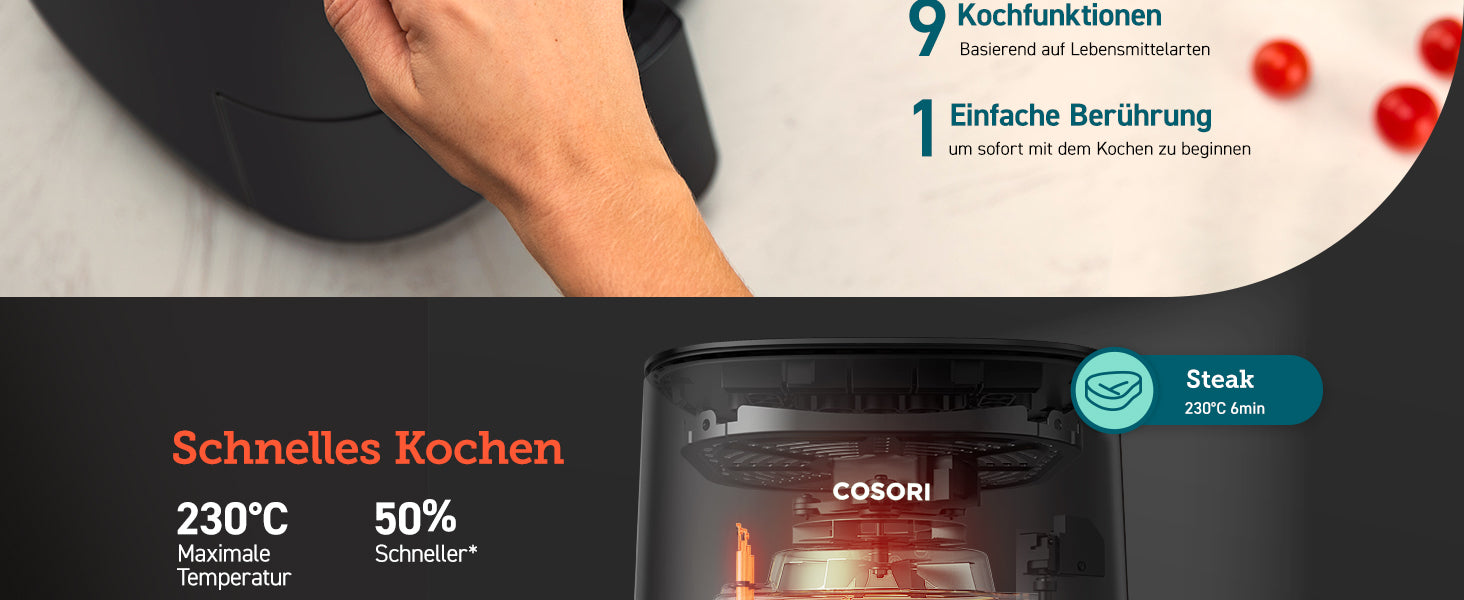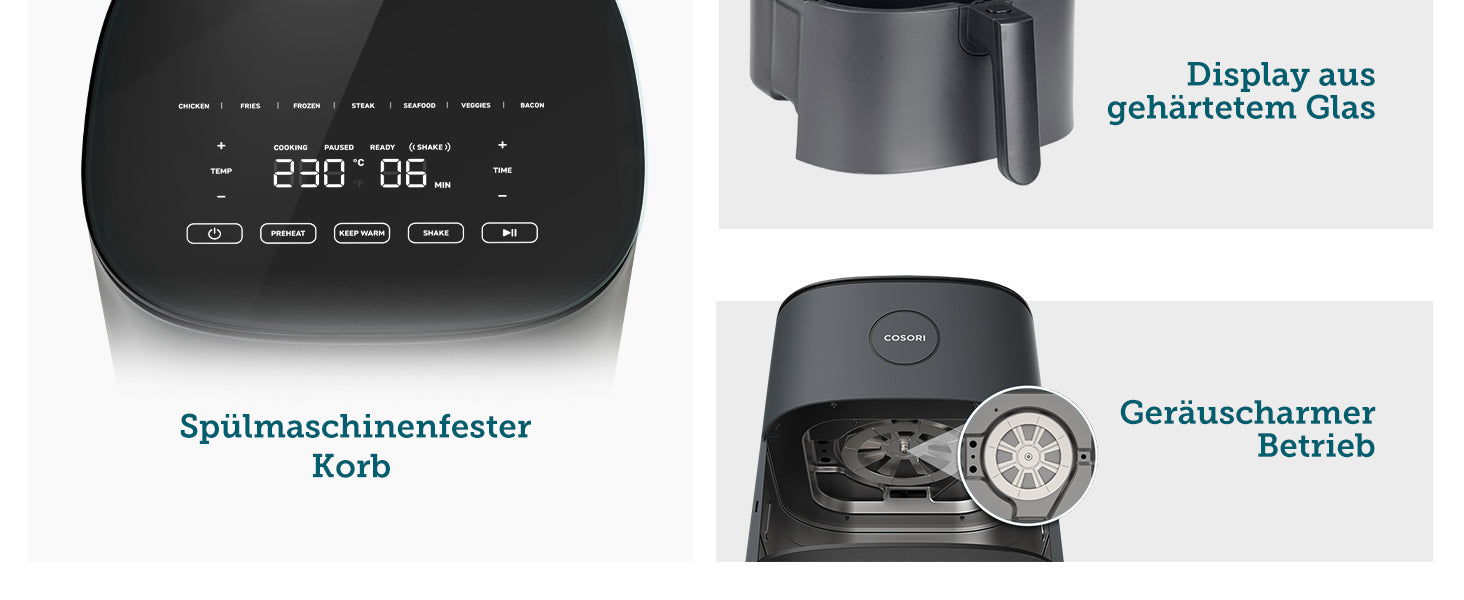 COSORI 4,7-Liter Heißluftfritteuse Dunkelgrau & Zubehör