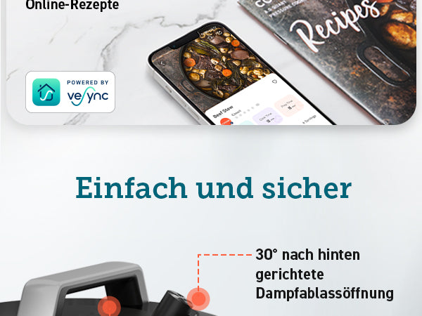 - Inklusive Rezeptbuch: Der Schnellkochtopf wird mit einem kostenlosen Rezeptbuch geliefert und weitere Rezepte finden Sie in der kostenlosen VeSync App