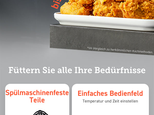 - 【Alles unter Kontrolle. Alles im Blick】Dank des großen Sichtfensters mit Innenbeleuchtung kannst du den Garvorgang immer genau beobachten und so - ohne die Heißluftfritteuse öffen zu müssen -sicherstellen, dass der perfekte Garpunkt jedes Mal und ohne Ausnahme erreicht wird