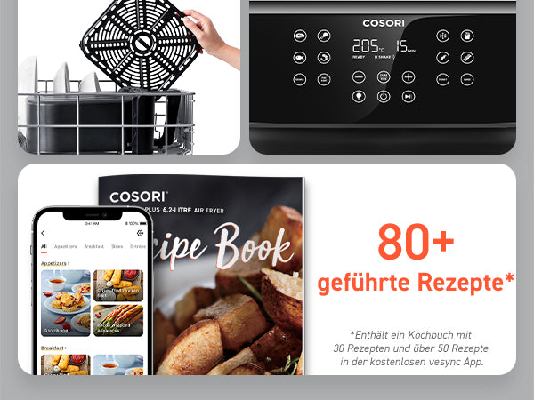 - 【Große Auswahl an Rezepten】Enthalten ist ein Rezeptbuch mit 30 Rezepten, mehr als 50 weitere Rezepte finden sich in der VeSync-App Folge cosori.deutschland in den Sozialen Medien, um weitere tolle Kreationen und Rezepte zu entdecken