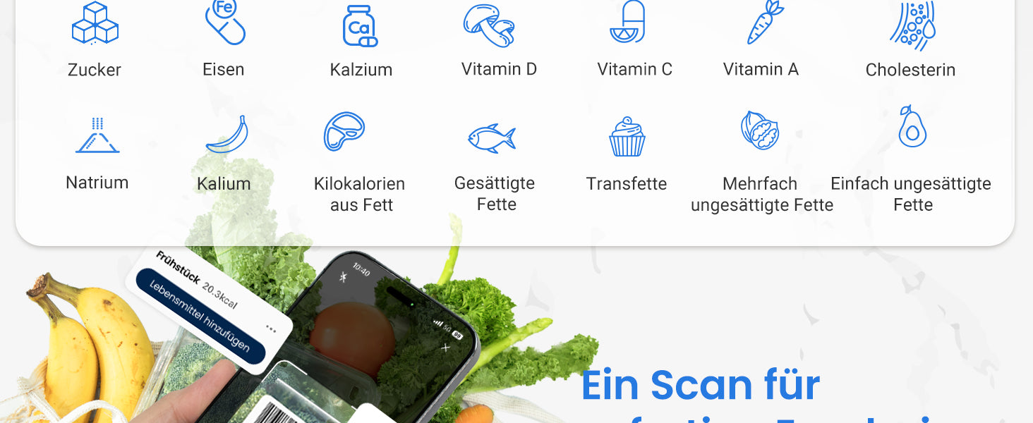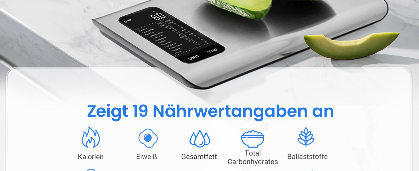 Größeres und Klareres Display: Gewinne einen klareren Blick auf Display von 12 Ernährungsdaten wie Kohlenhydraten, Proteinen, Fett, während in der APP VeSync bis zu 19 Nährstoffe verfolgt und analysiert werden können