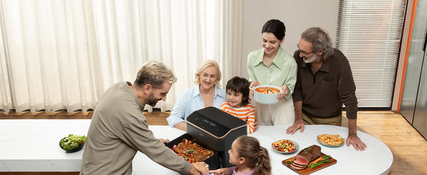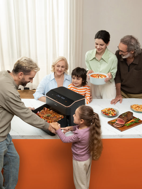 - 𝗘𝗶𝗻 𝗚𝗲𝗿ä𝘁 - 𝘀𝗰𝗵𝗶𝗲𝗿 𝘂𝗻𝗯𝗲𝗴𝗿𝗲𝗻𝘇𝘁𝗲 𝗠ö𝗴𝗹𝗶𝗰𝗵𝗸𝗲𝗶𝘁𝗲𝗻: Heißluftfrittieren, Braten, Grillen, Backen, Dörren und Aufwärmen – mit diesen 6 Funktionen kann Ihre Familie eine Vielzahl köstlicher Gerichte genießen
