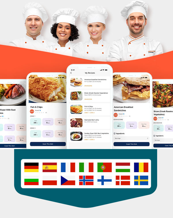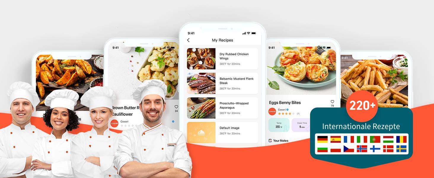 - 𝟳𝟬 𝘃𝗼𝗺 𝗖𝗵𝗲𝗳 𝗸𝗿𝗲𝗶𝗲𝗿𝘁𝗲 𝗢𝗻𝗹𝗶𝗻𝗲-𝗥𝗲𝘇𝗲𝗽𝘁𝗲: In der App finden Sie 70 vom Chef kreierte Online-Rezepte und 90 plus Kochtabellen, die Ihnen helfen, eine köstliche, gesunde und ausgewogene Ernährung zu genießen