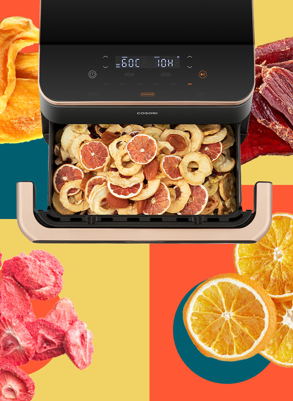 - 𝟰𝟱 Prozent 𝗲𝗻𝗲𝗿𝗴𝗶𝗲𝗲𝗶𝗻𝘀𝗽𝗮𝗿𝘂𝗻𝗴, 𝟲𝟱 Prozent 𝘀𝗰𝗵𝗻𝗲𝗹𝗹𝗲𝗿: Die COSORI TwinFry Heißluftfritteuse mit Dual Blaze-Technologie kocht 65 Prozent schneller und ist 45 Prozent energiesparender; So können Sie schmackhaftere Speisen in kurzer Zeit und mit minimalem Aufwand genießen