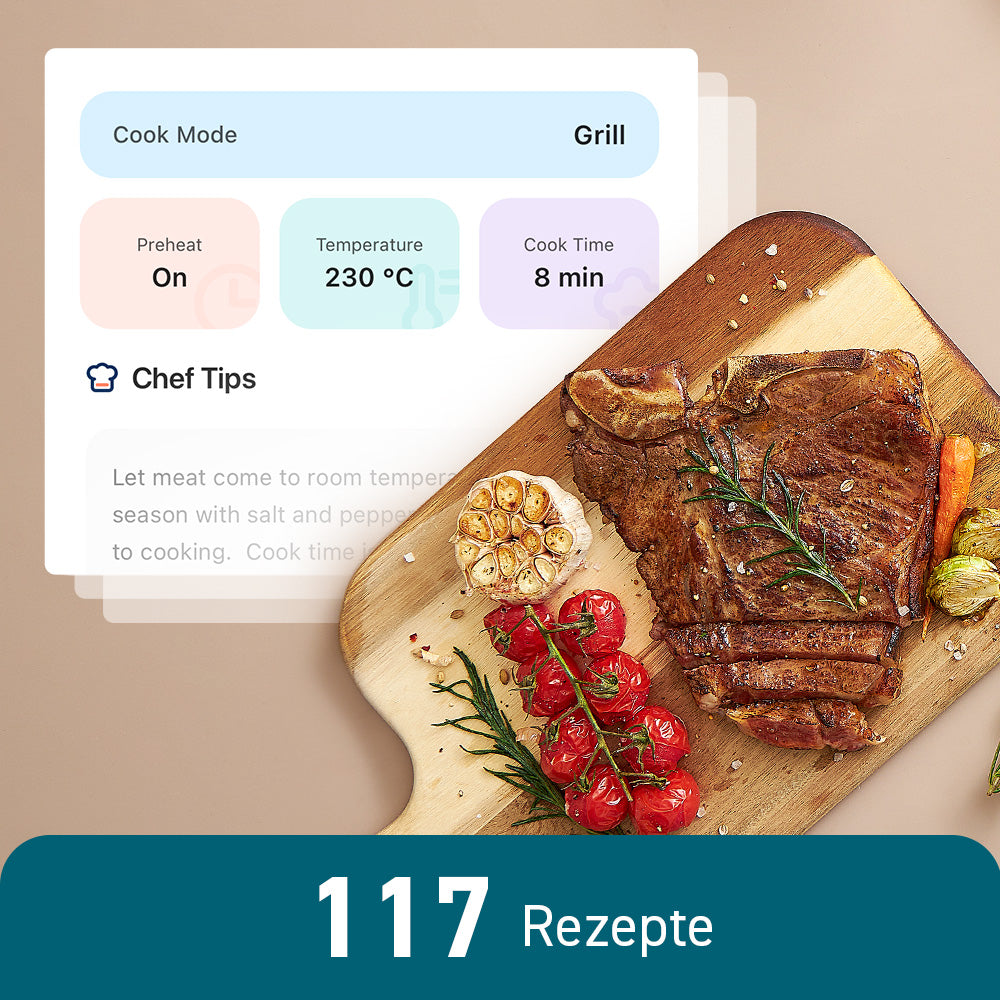 Inklusive eines Kochbuches mit 30 Rezepten und 87 Rezepte in der kostenlosen VeSync-App.